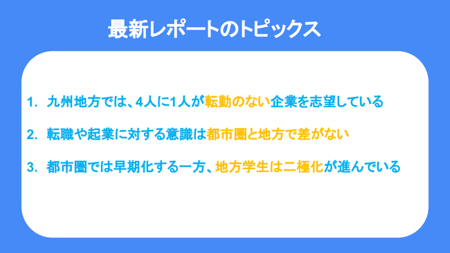 1. 九州地方では、4人に1人が転勤のない企業を志望している