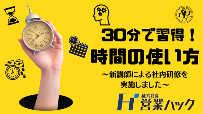 全従業員がフルリモートで営業支援を行う株式会社営業ハック(本社:東京都港区・代表:笹田裕嗣)は、2023年2月16日(木)に社内研修を開催いたしましたのでご報告させていただきます。新たな組織編成や新メンバーの加入に伴い、社内での動き方をよりスムーズにすることを目的に実施。第4回となる今回は、効率の良い時間の使い方について、新社内研修講師であるカスタマーサクセス部山口から話しました。