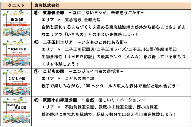 「駅からはじまるいきもの探し いきものGO」の開催期間中に配信されるクエスト一覧は下記の通りです。