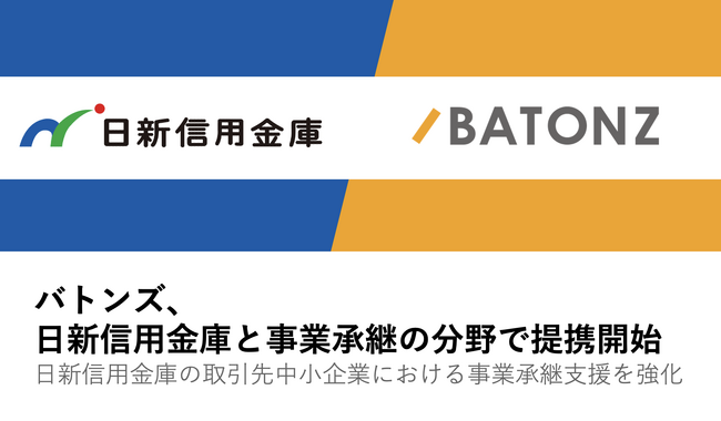 M&A総合支援プラットフォーム「BATONZ(バトンズ)」を運営する株式会社バトンズ(本社:東京都中央区、代表取締役:神瀬 悠一、以下バトンズ)は、日新信用金庫(本社:兵庫県明石市、理事長:山本 良一)と中小企業における第三者承継・M&Aを支援するための協定を締結したことをお知らせします。