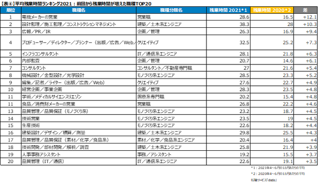 2021年コロナ禍の職種別「平均残業時間」を調査 ひと月の平均残業時間は20.8時間で昨年とほぼ同様
