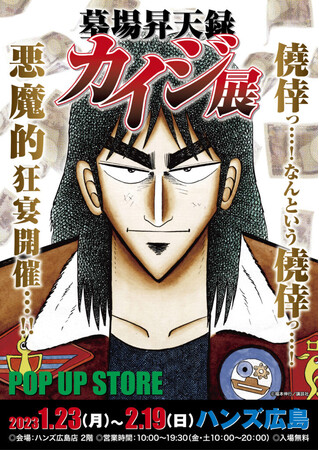 令和5年1月23日(月)〜2月19日(日)の期間中・・・・ハンズ広島にて・・・・唯一無二の世界観で人気を誇るっ・・・・ギャンブル漫画『賭博黙示録カイジ』シリーズにスポットを当てたグッズストア・・・・【墓場昇天録カイジ展 POP UP STORE】を圧倒的開催っ・・・・!