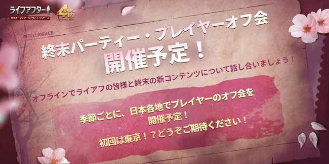 ゲームの内容以外でも、公式イベントとして、サバイバーの皆様が4周年を楽しく過ごせるよう、プレイヤーのオフ会を開催予定です。初のオフ会は東京で行う見通しとなっています。皆様に会える日を心待ちにしております。