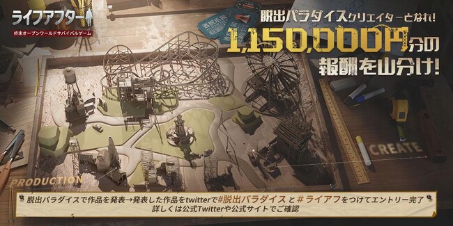 これに伴い、今回のコンテンツについて、公式Twitterは「脱出パラダイスクリエイターとなれ」と題した投稿キャンペーンを開始します。100万円以上の報酬が用意されていますので、皆様のご参加をお待ちしております。