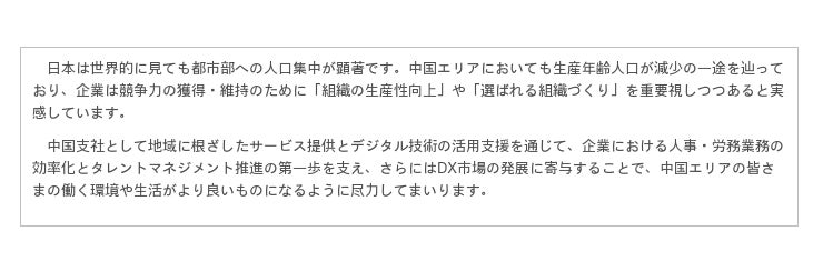 今後も、各拠点を通じて企業の生産性向上と働きやすい組織づくりを後押しし、誰もがその人らしく働ける社会の実現を目指します。