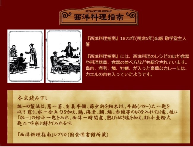 日本で初めてカレーのレシピを紹介した「西洋料理指南」