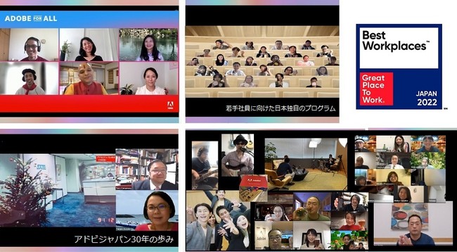 2021年にアドビでは、「心、おどる、デジタル」というビジョンのもと、日本オフィス独自で新たに若手育成プログラムをはじめとした様々な取組みを導入しました。社内のコミュニケーションを活性化する施策や、社員の声を吸い上げる施策なども多数展開し、さらにグローバル全体で定期的な全社休日制度を導入するなど、全ての社員にとって働きやすい環境を生み出すことに注力しています。今回は、その施策の一部をご紹介します。