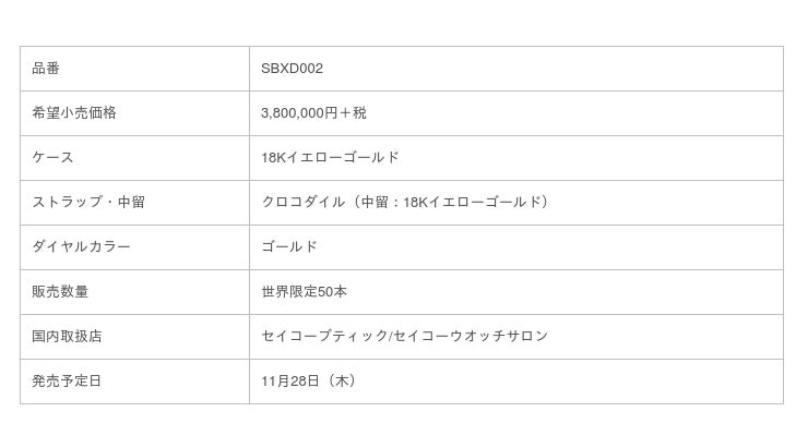 セイコーウオッチ株式会社(代表取締役会長 兼 CEO:服部 真二、本社:東京都中央区)は、世界初のGPSソーラーウオッチ<セイコー アストロン>から、世界初のクオーツウオッチ<クオーツ アストロン>の誕生50周年を記念したトリビュートモデルを11月28日(木)より全国および、海外市場において発売いたします。販売数量は50本、希望小売価格は3,800,000円+税です。