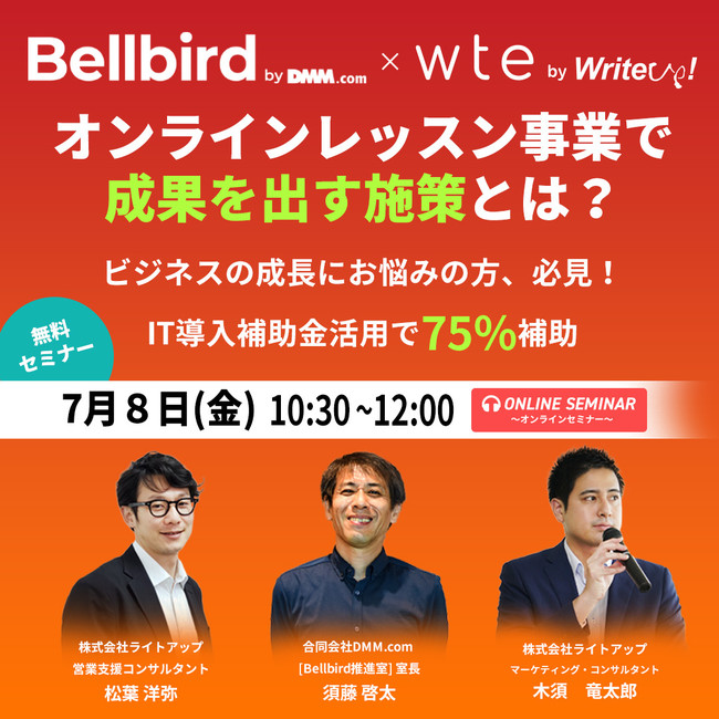 ・タイトル:【Bellbird by DMM× WTE by ライトアップ】オンラインレッスン事業の成功の秘訣とは?