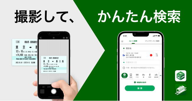 株式会社ナビタイムジャパン(代表取締役社長:大西 啓介、本社:東京都港区)は、2022年12月23日(金)より、『NAVITIME』『乗換NAVITIME』アプリにて、「特急券読み取り検索」機能の提供を開始します。