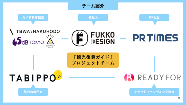 そこに、「旅」を軸とした企画開発を得意とするTABIPPO、企業とメディア、生活者をつなぐインターネットサービス「PR TIMES」を運営するPR TIMES社が情報発信を支援する形で、プロジェクトチームができています。