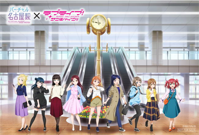 バーチャル名古屋駅のコンコースに設置する、「ラブライブ!サンシャイン!!」とのコラボブースでは、ラブライブ!サンシャイン!!に登場する沼津の観光スポットを名シーンとともにマップ上で紹介します。そのほかメンバーたちとの記念撮影スポットや、臨場感あふれるライブ映像に合わせて「ラブライブレード!サンシャイン!!」を振れるギミックもご用意しています。