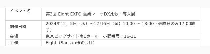 <12月5日(木)、12月6日(金)>「第3回 Eight EXPO 営業マーケDX比較・導入展」 に出展