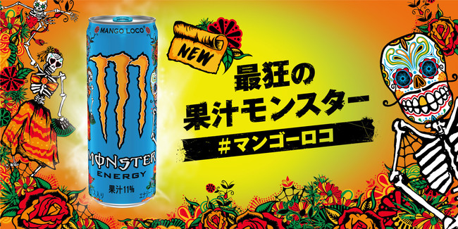 本商品は、マンゴーに9種のフルーツをブレンドした甘酸っぱい味わいと独自のエナジーブレンドを配合した、果汁系モンスターシリーズの中で全米No.1の人気を誇るフレーバーです。缶のパッケージには、メキシコの国民的行事(お祭り)である「死者の日」からインスピレーションを得て、モチーフであるガイコツのイラストを印象的に配置し、お祭り同様にカラフルでエキゾチックな雰囲気を楽しめるようなデザインとなっています。