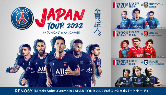 RENOSYは、世界トップクラスのプロサッカークラブの一つである、「Paris Saint-Germain Football Club(以下、パリ・サン=ジェルマン)」が実施する『Paris Saint-Germain JAPAN TOUR 2022』のオフィシャルパートナーに就任しました。