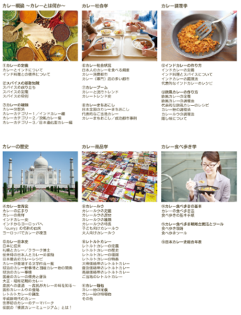 カレーに関する概論、 歴史、 文化(社会学)、 商品知識(商品学)、 調理料理方法(調理学)、 食べ歩き法などのカレーを体系的かつ実践的に学びます。 単なる知識としてだけでなく、 ビジネスや家庭で実用的で実績できる「生きた学問」として各所で役に立てる実務的な知識です。