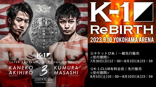 9月10日(日)神奈川・横浜アリーナ「ReBOOT〜K-1 ReBIRTH〜」の観戦チケットをチケットぴあにて一般先行発売、公式ファンクラブのK-1.CLUB有料会員 先行発売を行います。