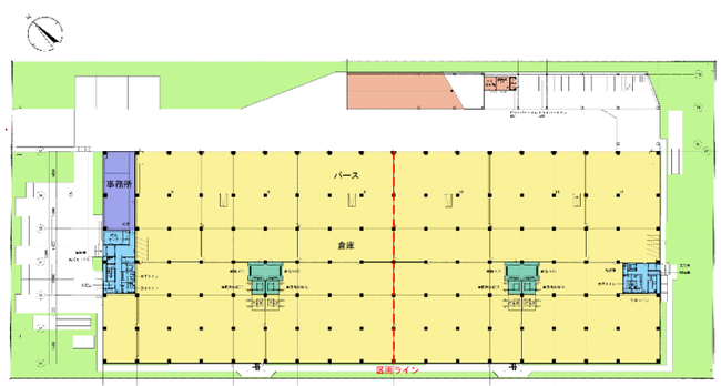 また、テナント分割にもフレキシブルに対応できるよう大型車両が直接2階へアクセスが可能なスロープを設置し、昇降設備は荷物用エレベーター・垂直搬送機をそれぞれ4機を標準装備、さらに垂直搬送機2機の増設を可能とする構造とし、入居テナントの将来ニーズへの対応も配慮した仕様としています。事務所の増設や倉庫空調機器等の設置、非常用発電機の設置等、入居テナントのニーズに寄り添った最適なカスタマイズを考えています。