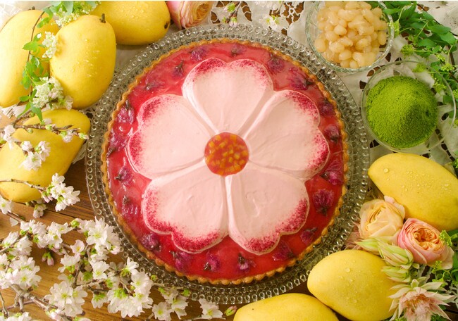 桜風味のクリームに濃厚な抹茶ブリュレを組み合わせた春にぴったりのタルト。ミルクで煮た白いんげんの甘く素朴な味わいと味のアクセントに選んだマンゴーのさわやかな酸味、桜ソースの上品な香りとともにお楽しみください。