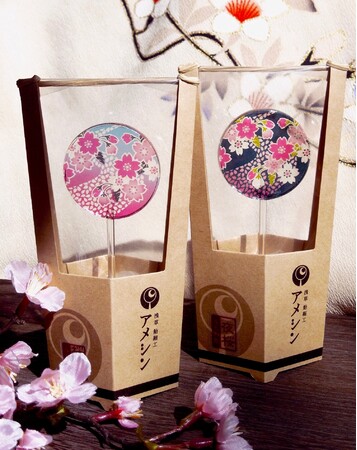 さくらの和柄が施されたうちわ飴です。しばらく飾ってお部屋のインテリアにも!