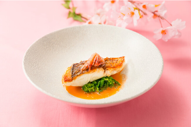白ビールとパプリカをベースにしたソースでいただく桜鯛のポワレに、桜海老のピクルスを添えた逸品です。※各日10食限定