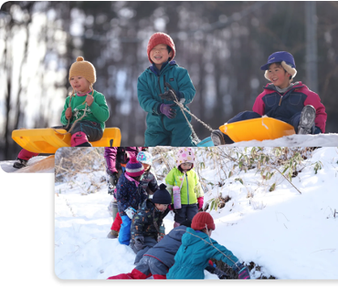 あすいくとJR東日本が行う「山いく」は、主に都心に暮らす家族が、自然の中での子どもの成長を大切に1日の大半を野外で過ごす「森のようちえん」の保育を体験し、家族にとって「第?の故郷」になるようなかけがえのない時間を提供しています。夏に続き、冬の山いくでも地元を走る小海線の特別列車「HIGH RAIL 1375」を見学、駅員のお仕事体験をはじめとした特別な体験会にご参加いただけます。