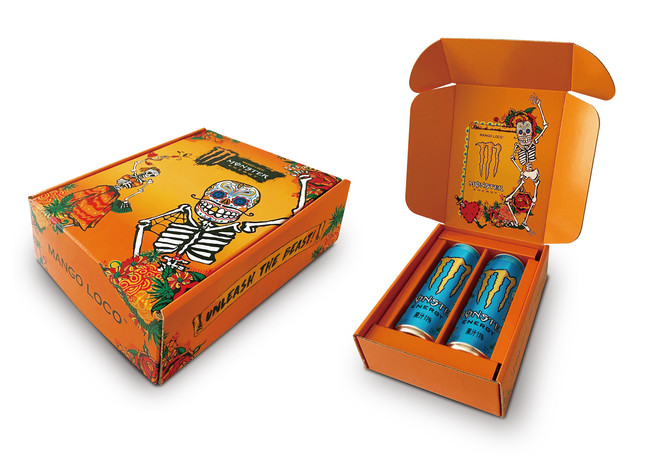 本商品はマンゴーに9種類のフルーツをブレンドしたフルーティーな味わいに独自のエナジーブレンドを配合。缶のパッケージには、メキシコの国民的行事である「死者の日」からインスピレーションを得て、モチーフであるガイコツのイラストを印象的に配置し、お祭り同様にカラフルでエキゾチックな雰囲気を楽しめ ようなデザインとなっています。