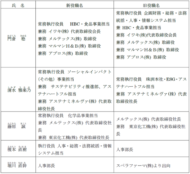 アステナホールディングス株式会社(本社:東京都中央区、代表取締役社長:瀬戸口 智、証券コード:8095)は、2024年2月28日開催の取締役会において、下記のとおり取締役の委嘱業務の変更、組織変更及び人事異動について決議いたしましたので、お知らせいたします。
