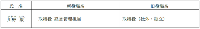 取締役の委嘱業務の変更及び組織変更、人事異動に関するお知らせ