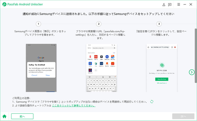 まず紹介するのは専門ソフトを使う方法です。PassFab Android UnlockはAndroid 画面ロックとSamsung FRP ロック削除用の2-in-1ツールで、アンドロイドの画面ロックを解除できるだけでなく、Googleアカウントのパスワードを入力することなくワンクリックでグーグルアカウントを削除することもできます。SamsungデバイスのGoogleアカウント削除をサポートし、画面上に表示されるガイドに従って操作するだけでAndroidからGoogleアカウントを削除できる簡単な方法です。