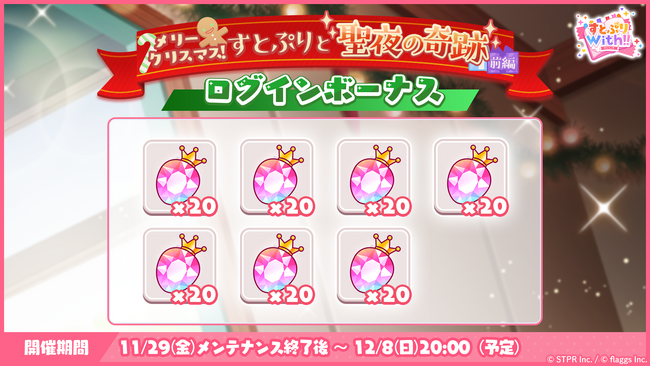 本日11月29日(金)より、「メリークリスマス!すとぷりと聖夜の奇跡 前編 ログインボーナス」を実施中です。