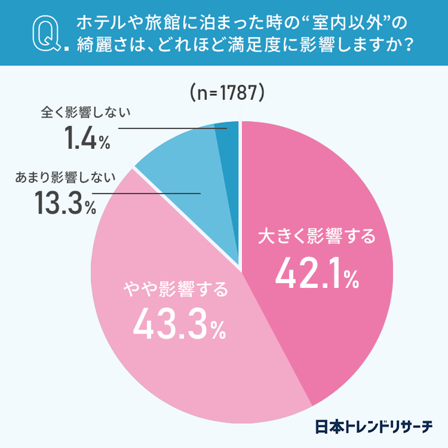 では、ホテルや旅館に泊まった時の“室内以外”の綺麗さは、どれほど満足度に影響するのでしょうか。