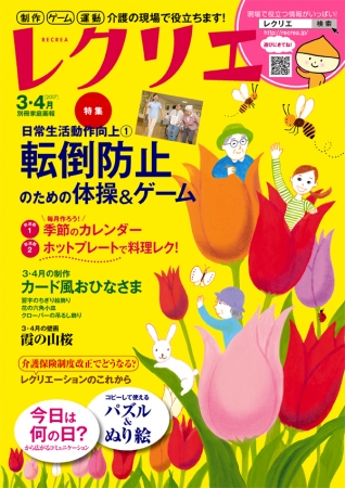 高齢者介護をサポートするレクリエーション情報誌『レクリエ3・4月』(2月1日発売)では季節を感じるレクリエーションや介護の現場ですぐに役立つ情報を紹介しています。また今号から6回にわたり日常生活動作を向上させるための「体操」と「レク」を紹介しています。