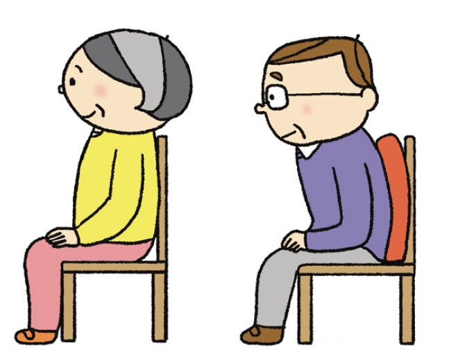 歩行では、できるだけ姿勢をまっすぐにすることが最も重要です。姿勢が保てない状態では、下肢を交互に振り出すことが困難になり、下肢が上げにくく、つまずきやすくなります。もし、円背の状態で座位のトレーニングを行う場合は、背もたれと腰の部分に隙間がないようにクッション等を入れて腰を支えるようにすると、姿勢が改善する可能性が高くなります。