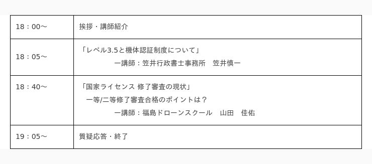 ■内 容 : ドローン行政書士と現役修了審査員に学ぶ!