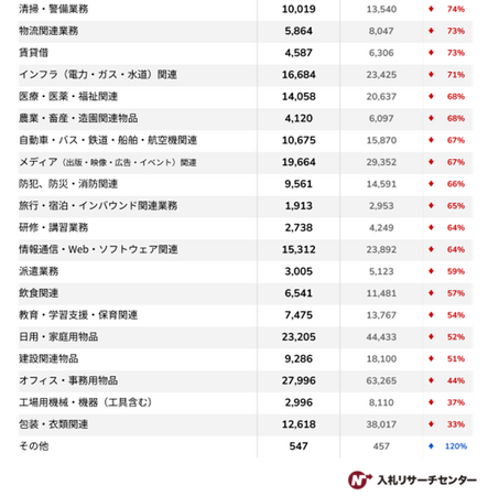 ・入札情報速報サービス「NJSS」にて独自に分類した業種カテゴリ別案件数データを集計