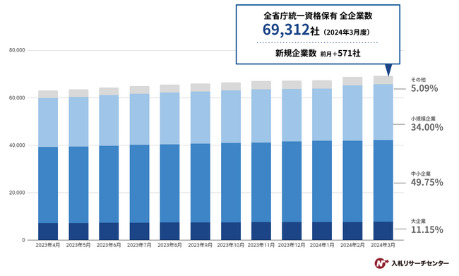 全省庁統一資格保有【全企業数】:69,312社(2024年3月度)