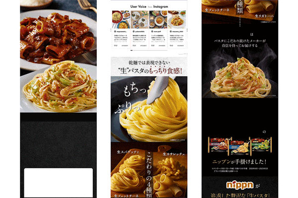 従前はUGCの数が少なかったため、最初はLetroが提供する「UGC生成パッケージ(※1)」を利用して、商品と親和性の高い生活者からUGCが生成される機会を設計。ビジュアルを通して実際に商品が食卓に並ぶ様子を伝えるだけでなく、「パスタの味わい」や「使いやすさ」、「どんなシーンで食べたいか」についての感想が発信される設計をすることでお客様の体験価値を把握することを狙いました。