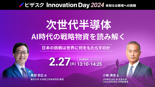 申込者数4500名突破【2/27(火)13時10分】次世代半導体 AI時代の戦略物資を読み解く 東京大教授・黒田忠広氏と JSR株式会社 前名誉会長・小柴満信氏の特別対談イベントを実施