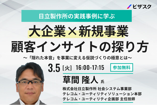 【3/5 (火) 16時】日立製作所の実践事例に学ぶ 大企業×新規事業 顧客インサイトの探り方無料オンラインセミナーを開催