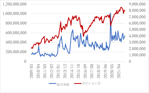 左軸-取引金額、右軸-ポジション計