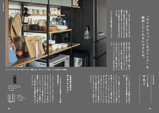 冒頭には山崎実業の熱烈なファンである人気マンガ家の山本さほさんのコミックエッセイを収録。テレビやYouTubeチャンネルで数多くの山崎実業製品を紹介している収納王子コジマジックさん、山崎実業製品の活用法に詳しいシンプルライフ研究家のマキさん、Twitterで役立つ山崎実業製品を紹介している河井菜摘さんにはインタビュー取材を敢行。トリは文筆家の岡田育さんのエッセイ。ニューヨークでも愛される山崎実業製品の魅力を綴っていただきました。