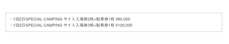 テント、寝具一式、照明、体験型ビュッフェとドリンク、温泉行きバスチケットが付いた豪華エリア。10日から入場可能。別エントランスで楽々入場。
