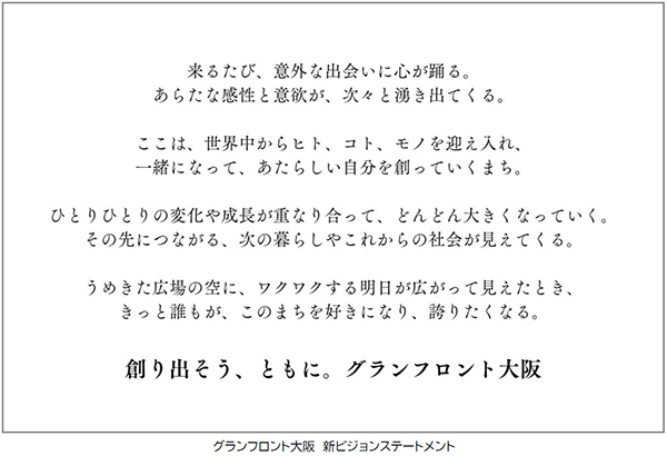 グランフロント大阪 新ビジョン 「創り出そう、ともに。」