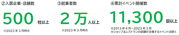 このような、多様な都市機能を集積したまちとして、グランフロント大阪には500社以上の企業や店舗が入居し、そこで働く人々は2万人を超えています。そして、10年間の累計来館者数は4.7億人を突破しました。ご支援ご愛顧いただきました多くの来街者の皆さまや地域の皆さまに、心より感謝申し上げます。
