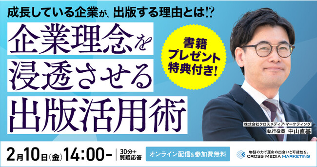 株式会社クロスメディア・マーケティングは2月10日(金)に企業様向けに「企業理念を浸透させる出版活用術セミナー」を開催いたします。