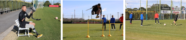 サッカーとの異ジャンル競技として、今回はパラアスリートの池田樹生選手をスペシャルゲストにお迎えしました。池田選手は、短距離を中心に活躍する陸上競技選手で、ユニランの講師としても活躍されています。Part1では、スポーツ義足での50m走ダッシュやハードルジャンプを披露。そして、過去にサッカー経験もあるということで、アントラーズ選手たちと一緒にパスやセットプレーなども楽しみました。