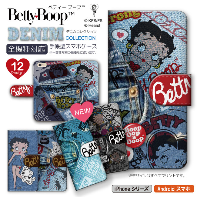 ★Betty Boop(TM)(ベティー ブープ(TM))のデニムライクな手帳型ケースのシリーズ第2弾が新発売!