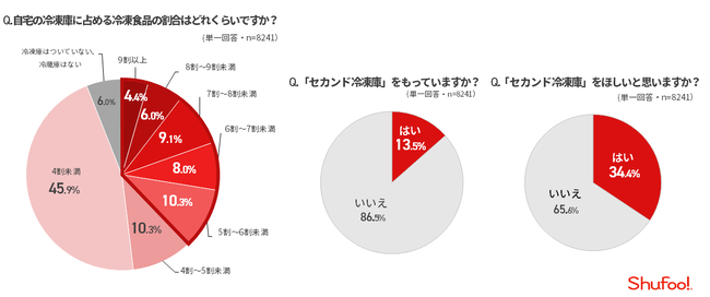 ■冷凍食品が冷凍庫の半分以上を占める人約4割 注目の「セカンド冷凍庫」 3人に1人がほしい