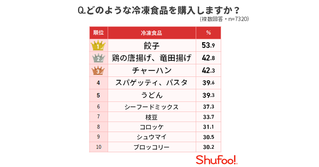 ■冷凍食品人気TOP3 餃子、唐揚げ、チャーハン